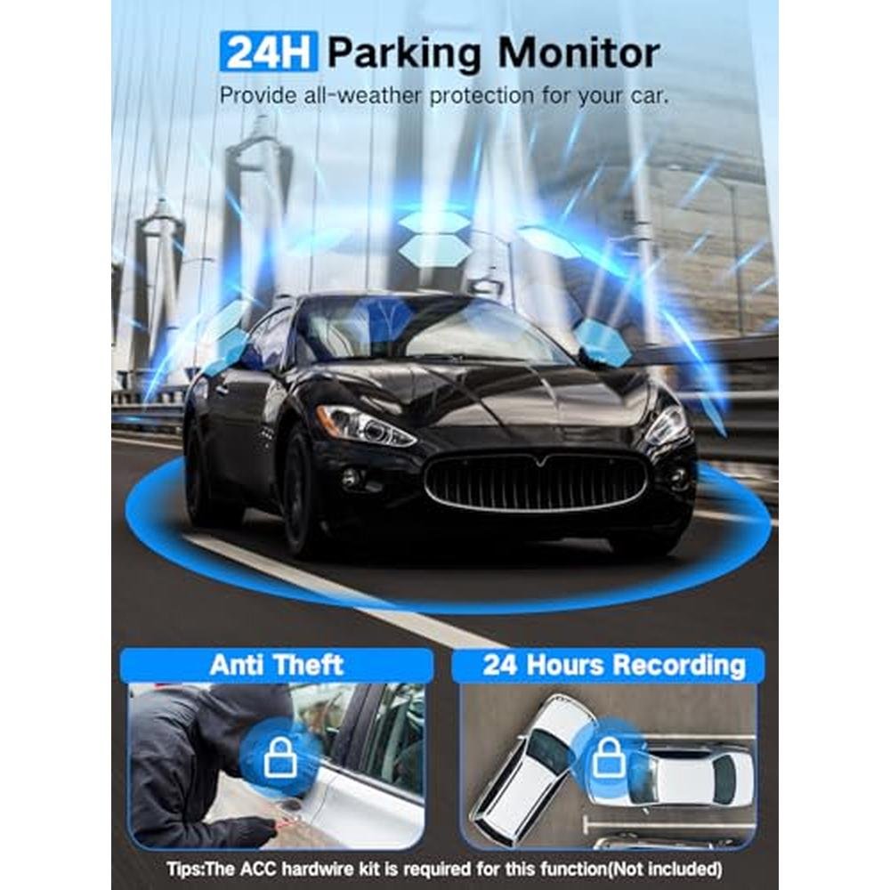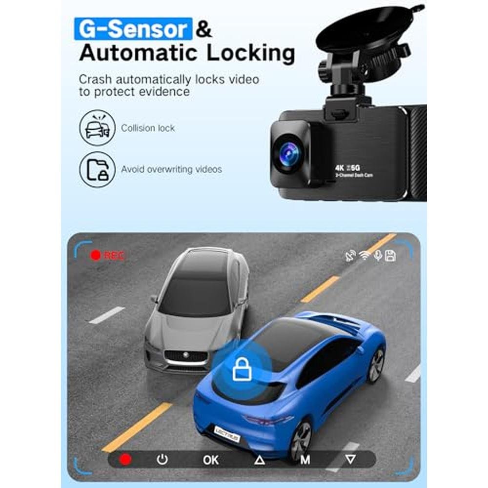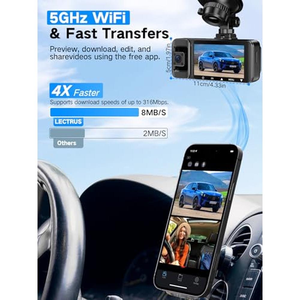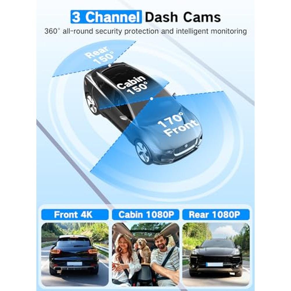4K Dash Cam | LecTrus K02 Pro 3-Channel Dash Camera for Cars | APP Control, Night Vision, 24/7 Parking Mode