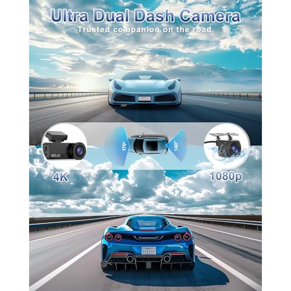 Dash Cam | 4K Dash Cam Front and Rear WiFi | Ultra HD 4K 1080p Camera with 64GB Card and Night Vision