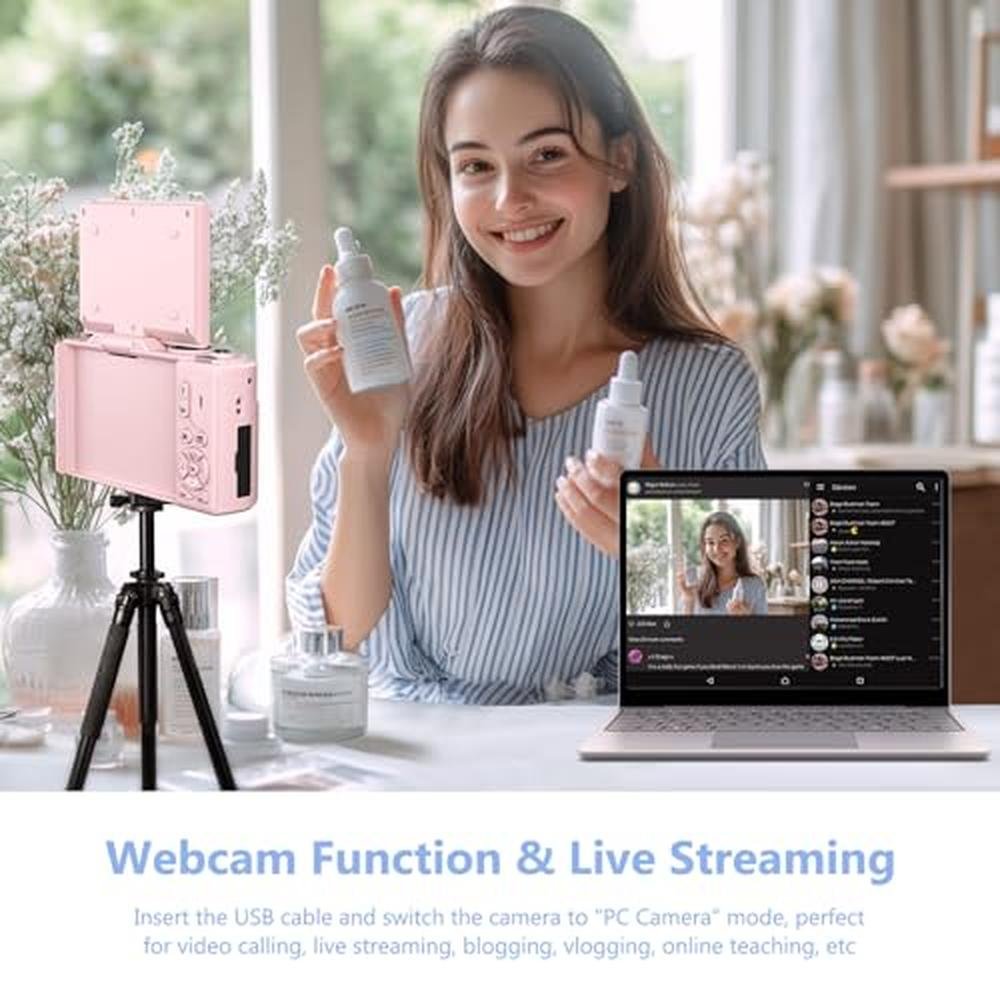 Experience the ultimate in digital photography with our premium 4K digital camera, designed specifically for beginners and kids. This high-end camera features a 64MP sensor, perfect for capturing stunning images and videos, and comes with a 3.0'' 180-degree flip screen for effortless self-portraits and vlogging. With 18X digital zoom, you can get up close and personal with your subjects, and the included 32GB micro SD card provides ample storage for your photos and videos. Whether you're looking for a digital camera with flip screen or a simple point-and-shoot camera, our device is the perfect choice. Available in pink, this camera is not only functional but also stylish, making it an ideal accessory for any photography enthusiast.