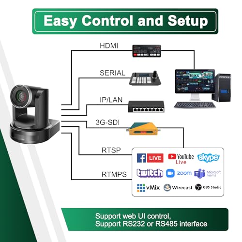 Experience high-quality video streaming with our 4K PTZ camera, featuring 10X optics zoom and multiple output options including HDMI, SDI, USB, and IP streaming. Designed for various applications such as churches, schools, video conferences, and live streaming, this camera offers flexibility and clarity. With its 10X SDI capability, it stands out as a top choice for those seeking high-definition video transmission, comparable to PV 10X SDI and PA 10X SDI models, but with the added benefit of 4K resolution. Understanding SDI specs, such as the difference between 12G SDI vs 3G SDI, is crucial for selecting the right equipment, and our camera is designed to provide superior video quality.
