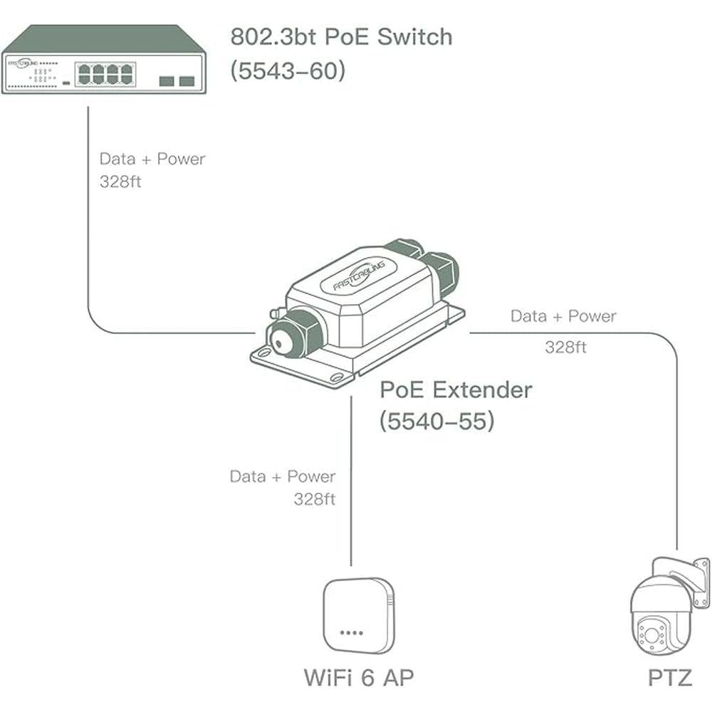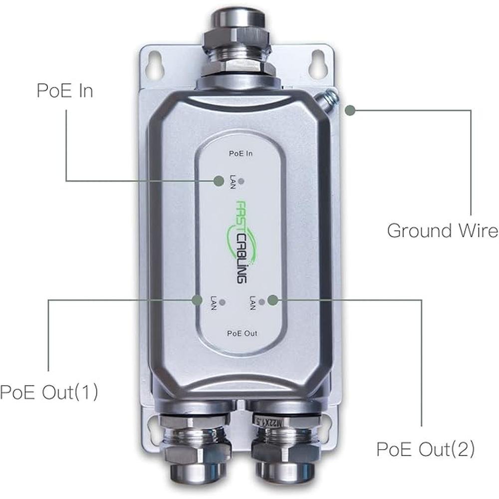 90W Outdoor PoE Extender 2 Port, Industrial Grade, Repeat 328ft PoE for Mesh, High Power PTZ Cameras, IP67 Waterproof, Complete Metal Design