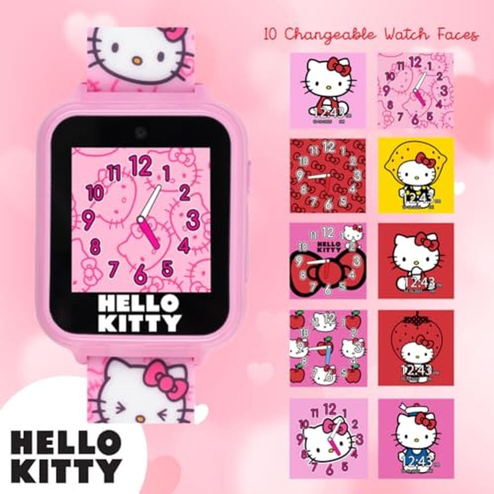 Accutime Hello Kitty Kids Smartwatch - Interactive Touchscreen with 10 Watch Faces, Camera, Games, Alarm, Step Tracker & More - Fun Gift for Girls with Pink Silicone Strap - Fits Wrists 5.5'' to 8.0"