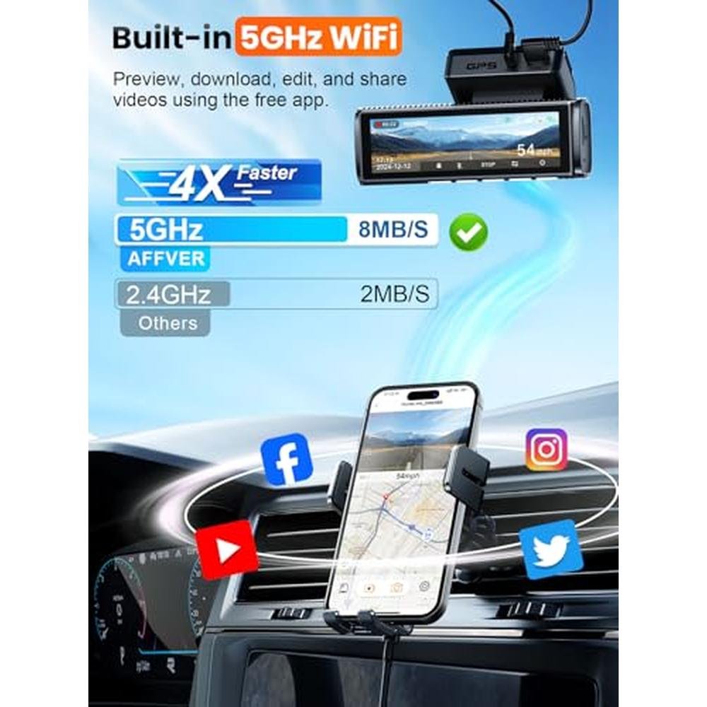 Affver 4K Dash Cam Front and Rear | 5G WiFi GPS 64GB | Ultra HD Night Vision