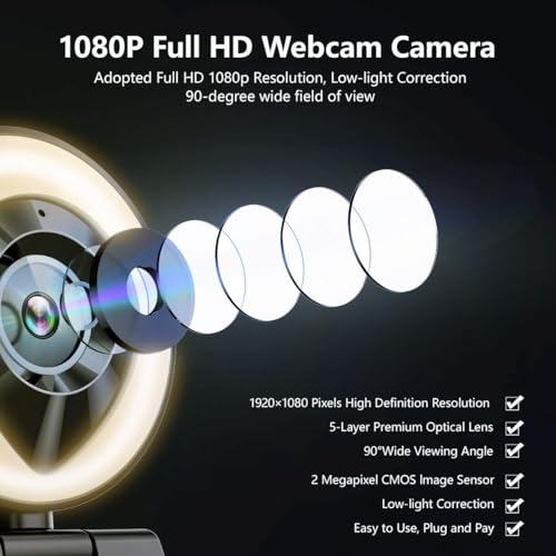Experience high-quality video streaming with the AIDELF Full HD Streaming Webcam, designed to provide exceptional performance for PC, desktop, and mobile devices. As a top-rated webcam camera for pc, this device boasts a 1080p resolution, dual microphone, and adjustable right light, making it perfect for streaming on platforms like Facebook, YouTube, and Xbox. With advanced auto-focus and a tripod for stable zooming, this webcam camera for streaming ensures a professional-grade video experience. Whether you're a gamer, streamer, or simply looking for the best buy webcam camera, the AIDELF Full HD Streaming Webcam is an excellent choice, offering a picture resolution of 1960 x 1080 and 30FPS video technology, 1080p HD webcam records sharper images and videos without frame loss. The real-time dynamic focus function captures every frame you have in motion and stillness. With 90 wide-angle and 100 vertical adjustable lens, which can protect your privacy by adjusting the angle.
