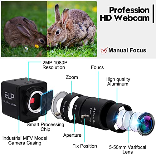 ALPCAM 10X | 5-50mm Varifocal Lens USB Camera 2MP Full HD 1080P UVC Webcam | High-Frame-Rate Plug-and-Play