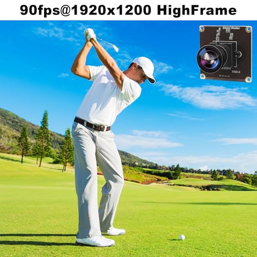 Experience high-speed imaging with the ALPCAM 2MP Global Shutter USB Camera Module, featuring a 1200P resolution and 90fps frame rate, making it perfect for applications requiring fast and accurate video capture, such as golf swing analysis. Equipped with a wide-angle, no-distortion lens and the AR0234 UVC Lightburn camera, this module provides exceptional image quality and versatility. Compatible with a range of operating systems, including Windows, Linux, Android, and Mac OS, the ALPCAM camera module is a reliable choice for various uses, from webcam applications to industrial vision systems. With its compact design and plug-and-play functionality via USB, integrating the ALPCAM 2MP camera into your project is seamless. The module includes a high-quality Aptina AR0234 sensor, full HD 1920x1200 resolution, and high-speed MJPEG compression, making it suitable for high-speed sports photography, AI object recognition, industrial inspection, and more.