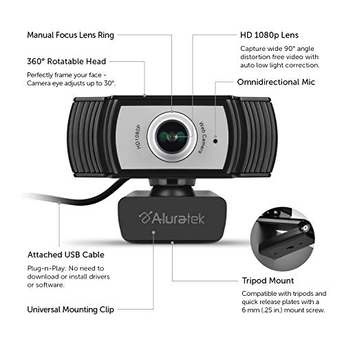 Video Webcam | Aluratek AWC04F Full HD Webcam with Built-in Microphone and Autofocus | Perfect for Streaming and Online Meetings