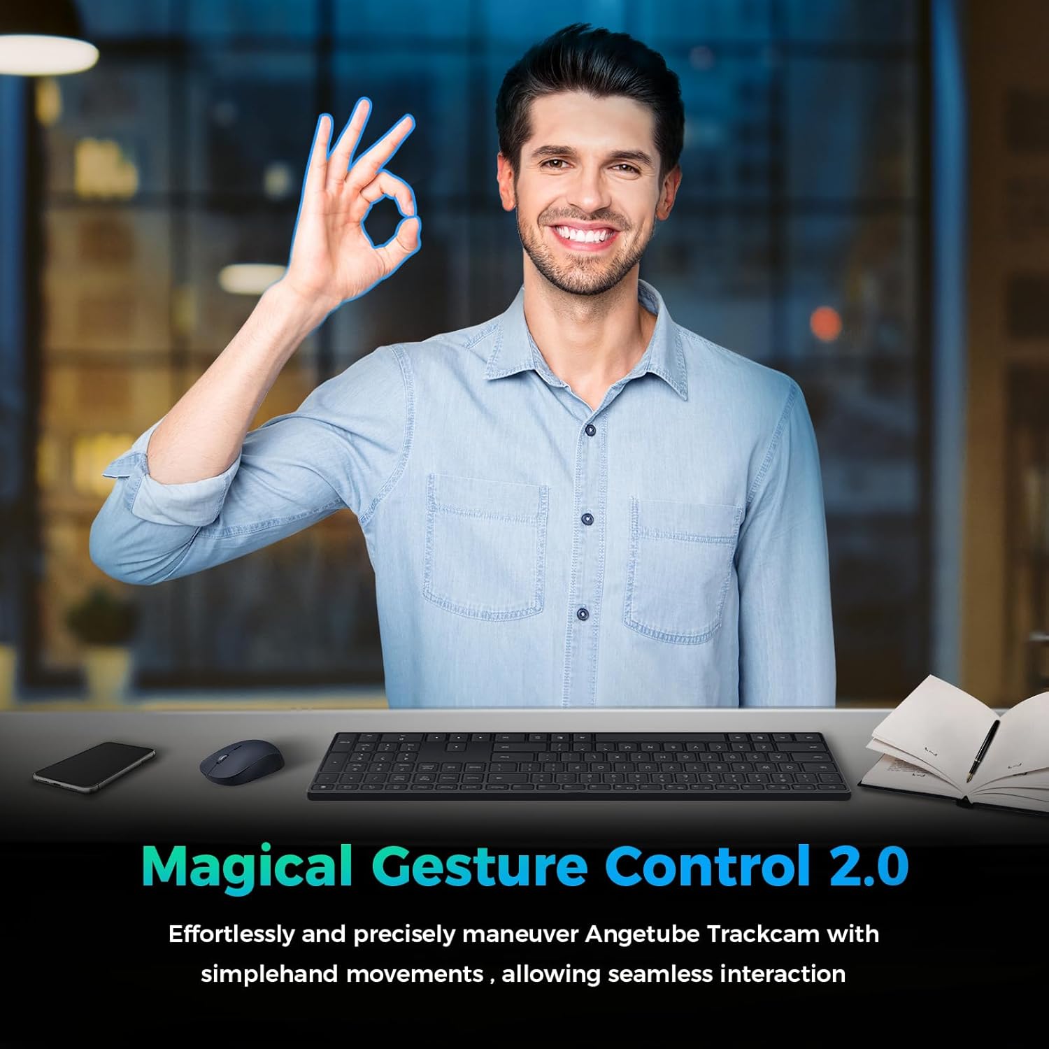 - 【Effortless Gesture Control】 The webcam 4k with new-generation simple gesture control takes your experience to a whole new level. 👌 = Enable AI tracking, ✋ = Disable AI tracking, "L" = Zoom in, 👆 = Zoom out. This streaming camera seamlessly switch between functions and capture every brilliant moment with ease.