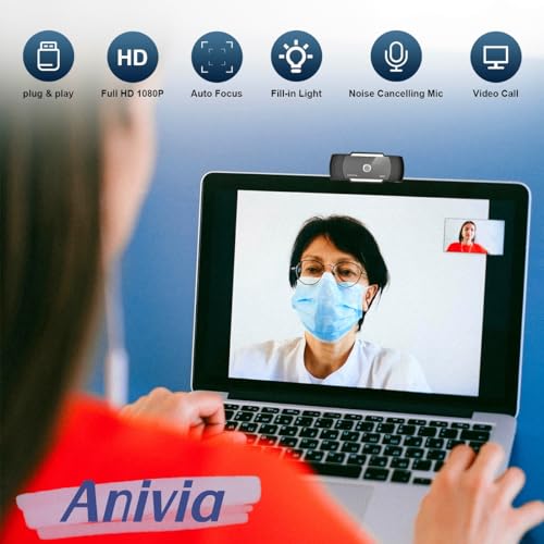 Anivia 1080p | Premium Webcam with Built-in Noise-Canceling Microphones and Low-Light Correction | Enhance Your Video Conferencing Experience