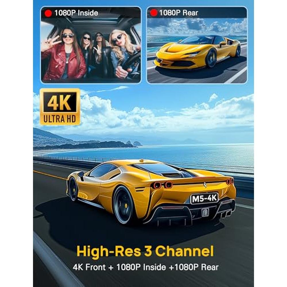 1080p Dash Cam | Anyski 3 Channel 4K Front and Rear Camera | Built-in 5G WiFi and 64GB Memory Card
