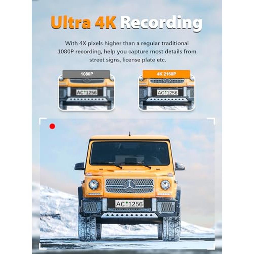 - 4K Ultra HD 2160P Single Front Dashcam for crystal clear video at 3840x2160P@30FPS