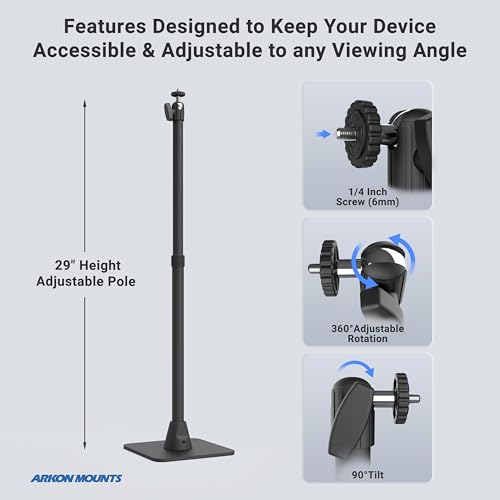 Experience the pinnacle of camera desk mounts with ARKON Mounts, expertly designed to elevate your filming experience. Our premium camera desk stand boasts a robust 29-inch adjustable pole and a 1/4-20 ball mount, ensuring seamless compatibility with an array of devices, including cameras, projectors, and MEVO devices. Engineered for unparalleled portability and stability, this sophisticated camera desk mount can be effortlessly set up on either a floor or desk, featuring a weighted base that provides exceptional vibration-resistant support. Whether you are a seasoned professional videographer or an aspiring content creator, our elite camera desk mount stand is the ultimate solution for capturing high-quality, crisp footage. With its adaptable arm and secure clamp, you can effortlessly find the perfect angle to unleash your creative vision.