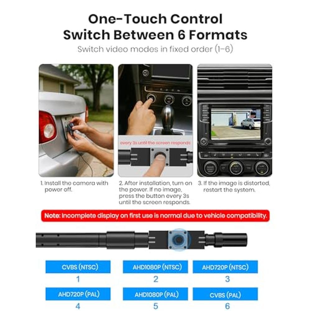 Experience the pinnacle of driving safety with the AUTO-VOX 180 Front/Backup Camera, expertly designed to deliver a seamless and secure driving experience. This premium OEM mini style camera boasts a screw-free easy install, rendering it an ideal choice for discerning owners of SUVs, pickup trucks, RVs, vans, campers, and cars. With its exceptional IP69K waterproof rating and 0.1Lux low light sensitivity, this high-performance backup camera ensures crystal-clear visibility in all weather conditions, redefining the standards of camera auto technology. Whether you're seeking a reliable camera auto fata spate or a superior camera auto system, the AUTO-VOX 180 is the ultimate solution, offering advanced features including side and rear view capabilities to elevate your driving experience.