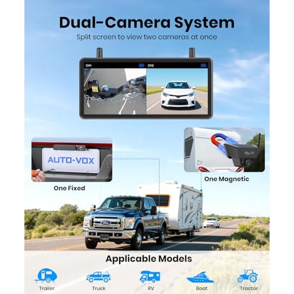 Camera Trailer | AUTO-VOX 2 Solar Wireless Backup Camera System 7.2 1080p HD Monitor | Enhanced Rear Visibility and Safety
