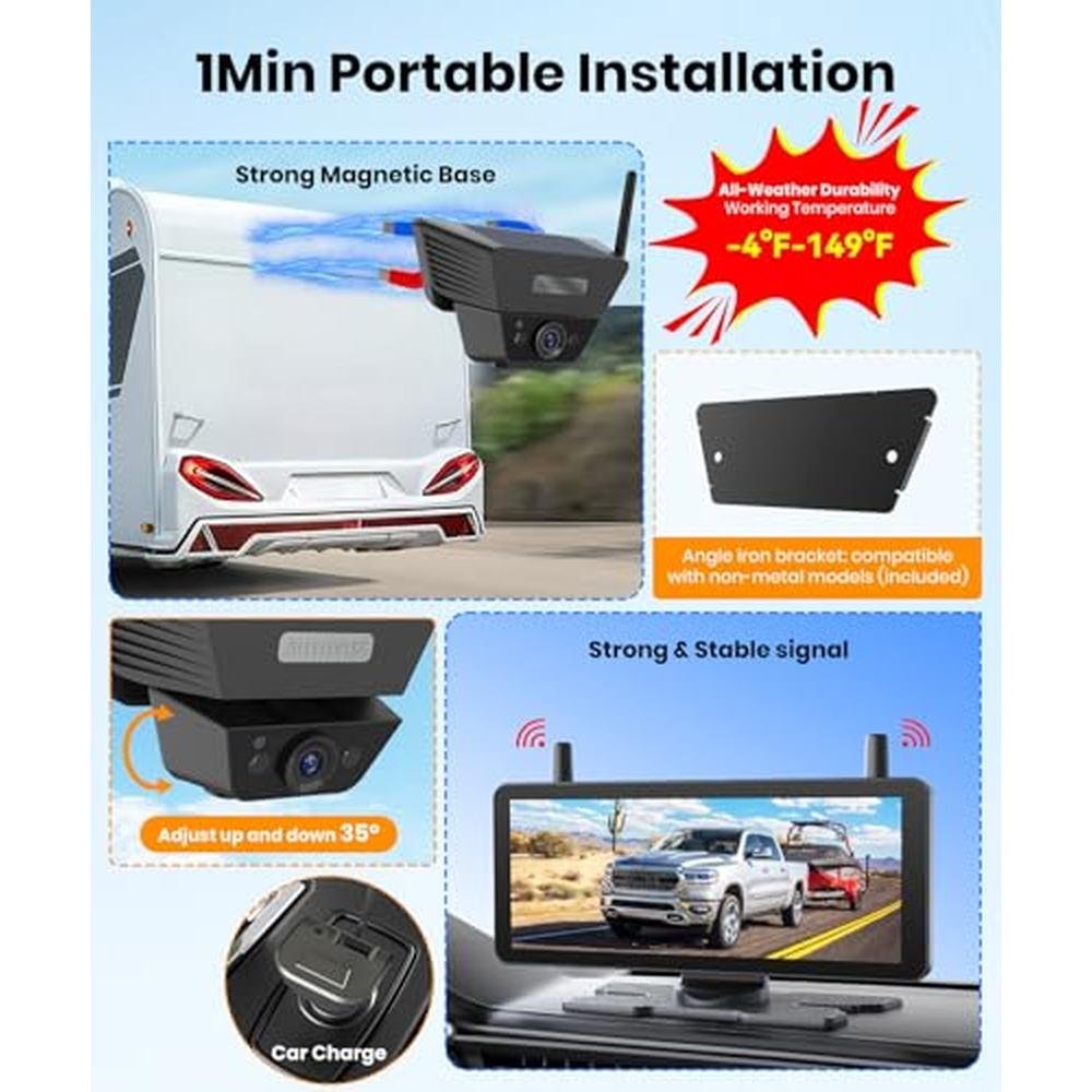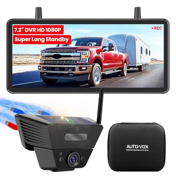 Auto Vox Wireless Backup Camera | Solar Magnetic 7.2" DVR 1080P | 1-Minute Install IP69K