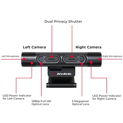 AVerMedia PW313D DualCam | 2-in-1 Webcam with Dual Autofocus Cameras and Mics | TAA/NDAA Compliant for Secure Remote Learning and Conferencing