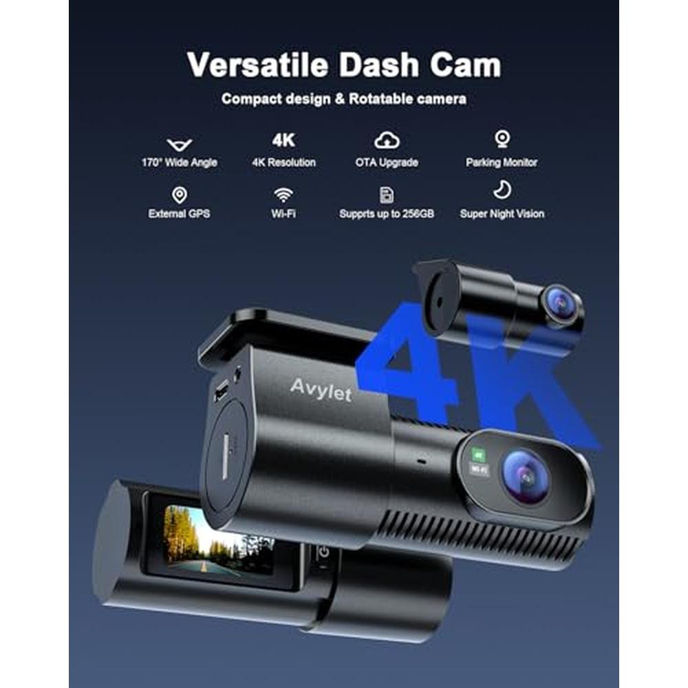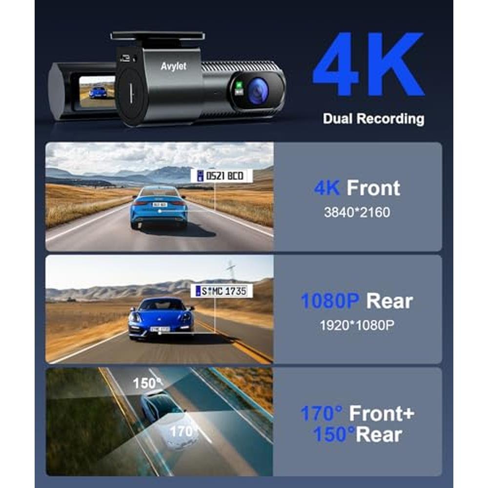 Dash Cam | Avylet A4 Front and Rear 4K 1080p | Built-in 5G WiFi and APP