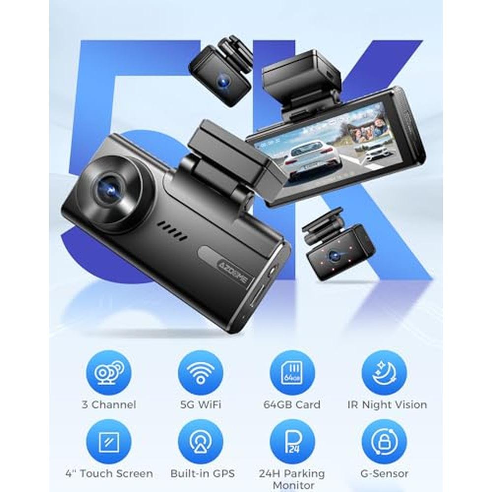 1080p AZDOME | AZDOME 5K 3 Channel Dash Cam M580 | 4K+1080P+1080P Triple Car Camera with 5G WiFi and GPS