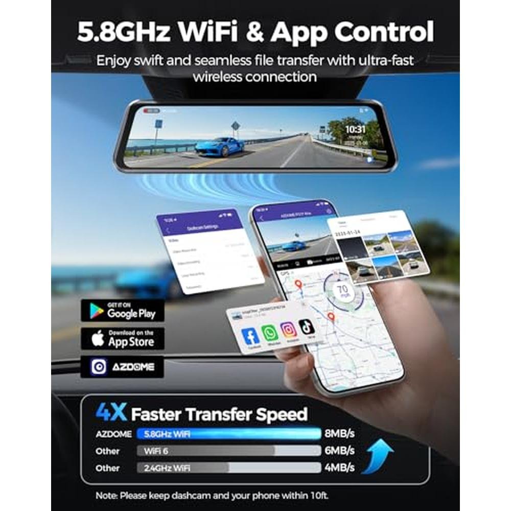 - Seamlessly connect to your smartphone via the AZDOME app using built-in 5.8GHz WiFi