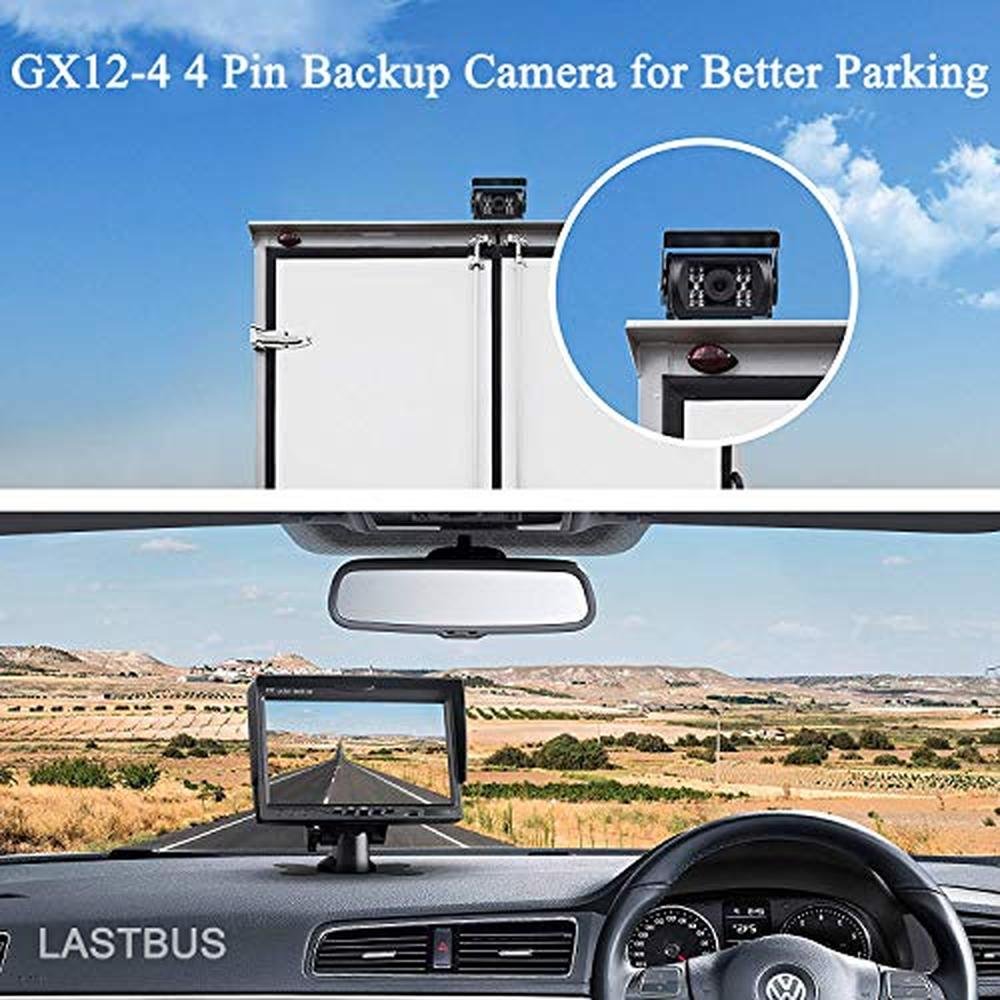 Experience a wider and clearer camera view with our Backup Camera, designed to provide a superior rear view camera experience for your RV, Camper, Truck, Trailer, Bus, or Van. Featuring a waterproof and night vision capable camera, you'll enjoy a wide view angle that enhances your safety and visibility while reversing. The 4 Pin GX12-4 Connector ensures a secure and reliable connection, making it easy to install and use. With its high-quality video feed, our reversing camera is the perfect solution for those seeking an improved camera view. Professional Backup Camera for Heavy Duty Vehicle With 18 IR led lights, upgraded camera chip, the LASTBUS backup camera can provide you with wider and clearer pictures when you are driving or parking. Great Night Vision Function: With 18 pcs smart built-in IR LED , this camera has over 25 meters (50ft) IR range, and catch clear picture during both day and night. Applicable to Your Car: This camera with 4-pin connector is designed for your bus, trailer, van, truck, or other vehicle using 12-24V DC, and is easy to install. Excellent Performance: This camera has a full metal shell and glass screen , which can make it work well and longer. Customer Service: 24-Hour Online Customer Service, 60-Day Money-Back Guarantee, 12-Month Replacement Warranty, and Lifetime Support. If you have any question or need any help, or have any dissatisfaction about the order, please contact us first, we will do our best for you. Specification: Connector: Standard GX12-4 Image Sensor : 1/4'' 2.5mm Color Sensor Horizontal Resolution : 700TV Lines Power Supply: 12-24V DC Fomat: NTSC View Angle: 130 Waterproof: IP69 Night Vision Function: Supported What's in the Box: Backup Camera x 1 Warning: The camera is using the standard GX12-4 or M12 4 pin connector, so please confirm your monitor or your wires system is using the standard GX12-4 or M12 4 pin connectors. Otherwise the camera cannot be compatible with your monitor system. If your monitor only support AHD, this camera will not be compatible with your monitor system.