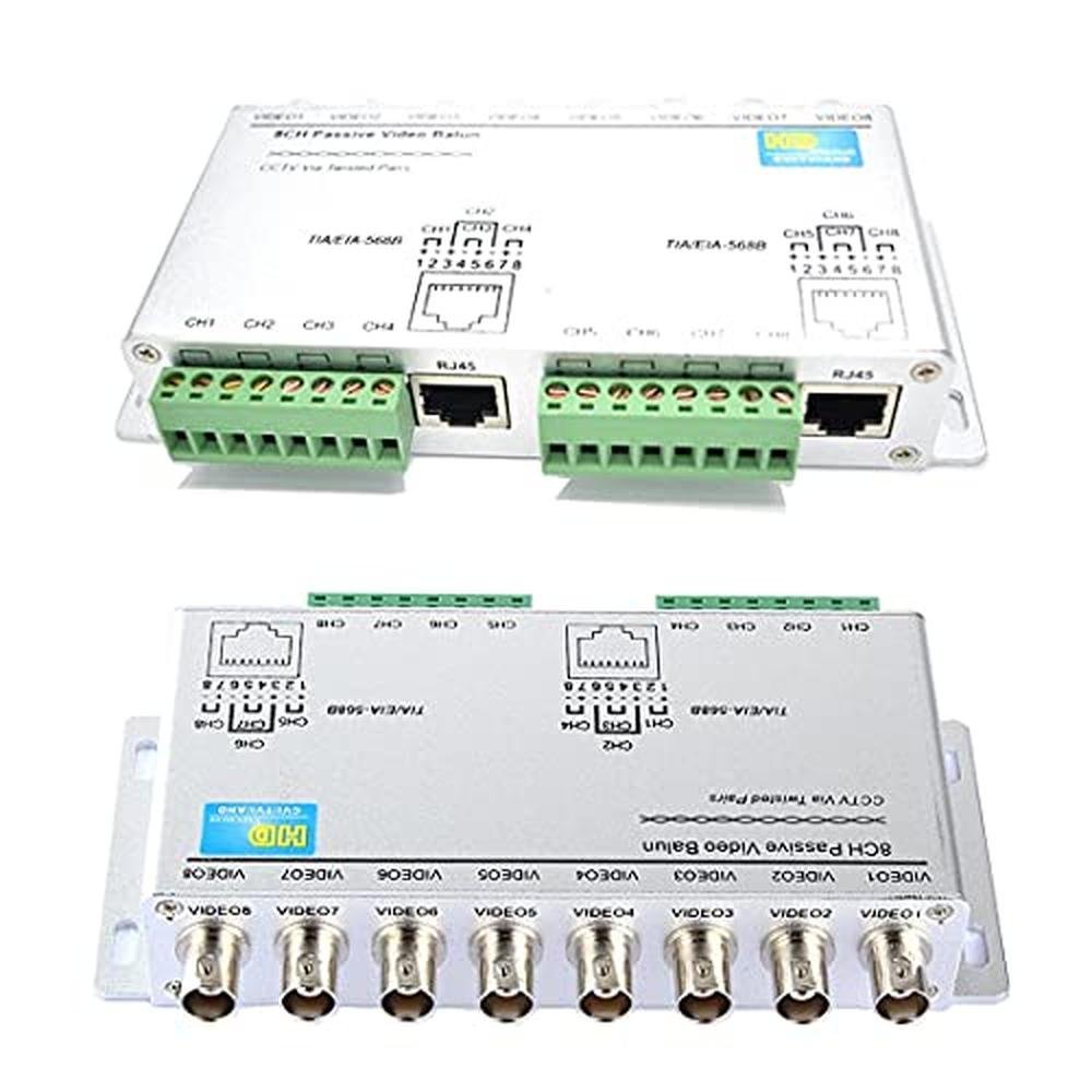 BeElion 8-CH UTP 720P 1080P HD Passive Video Balun Transceiver, BNC to Cat5 5E 6 RJ45(T568B) UTP Cable Converter Video Transmitter for HD-CVI TVI AHD CCTV Surveillance Camera
