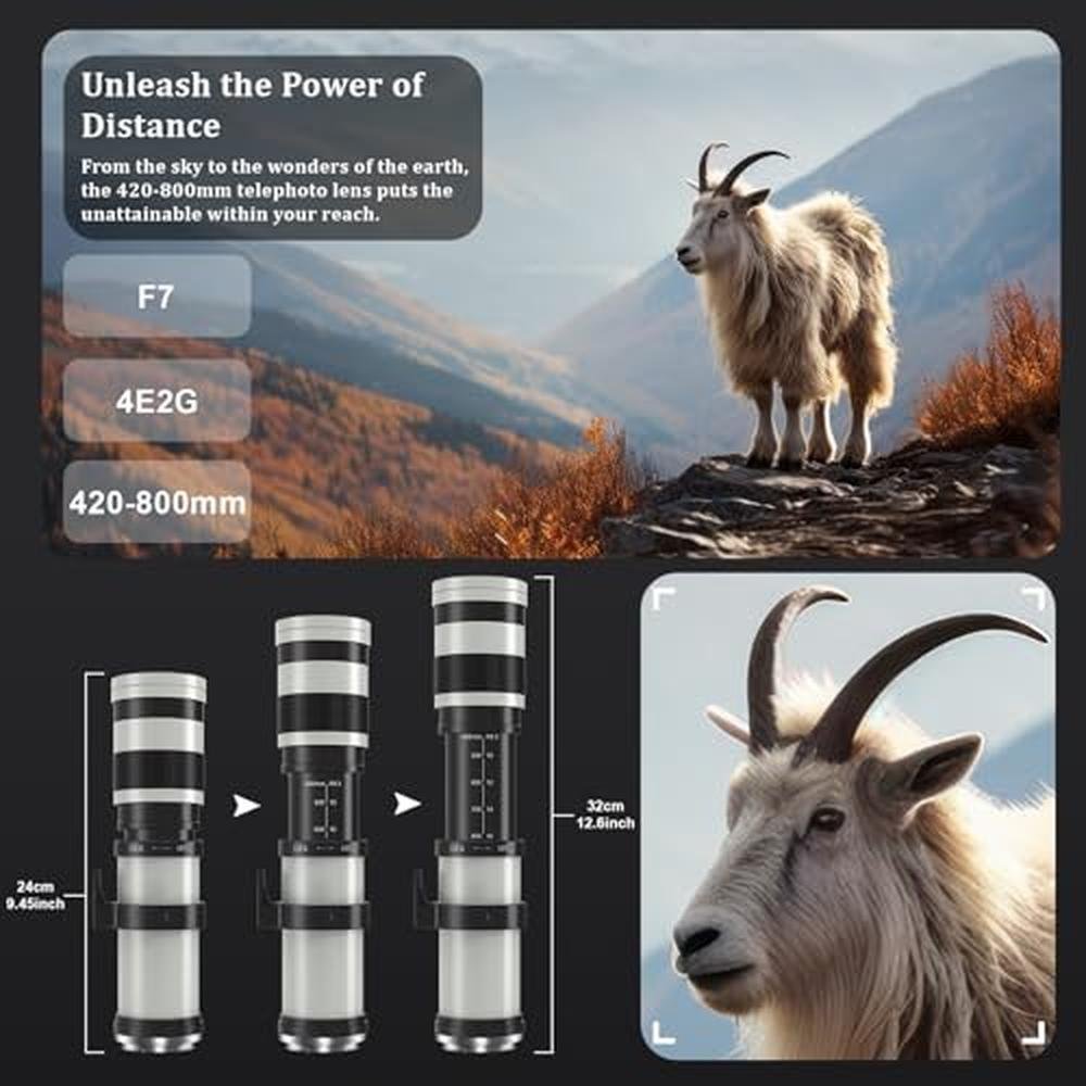 - The BENOISON 420-800mm Telephoto Lens features a manual focus MF zoom design, allowing for precise control over focus and zoom