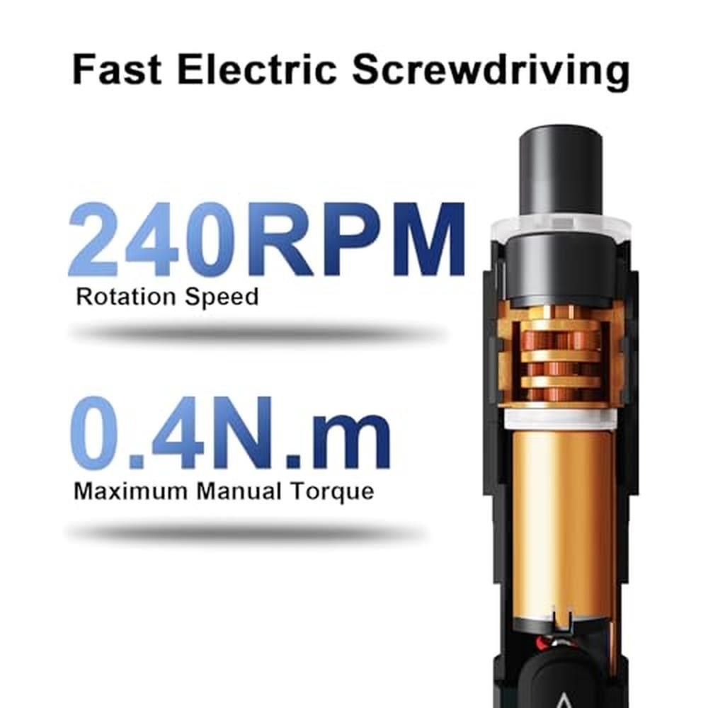 • Powerful Rechargeable Battery: The mini electric screwdriver features a long-lasting rechargeable battery. With a Type-C port for fast charging and a robust motor capable of reaching speeds up to 240 RPM, this tool makes any job effortless
