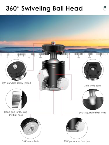 - Sturdy metal base and swivel ball head for smooth and stable camera movement
