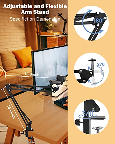 - Features a suspension boom scissor arm for effortless adjustment and precise positioning of your webcam