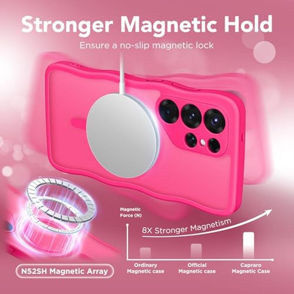 Indulge in the perfect fusion of style and protection with the CAPRARO Samsung Galaxy S25 Ultra Case, meticulously designed for women and girls. This premium phone case boasts upgraded full camera protection, ensuring your device remains safeguarded from scratches and damage. Seamlessly compatible with MagSafe, this exquisite cute wave translucent matte phone case is a must-have accessory for your Samsung S25 Ultra. Available in hot pink, it adds a touch of personality to your phone, redefining the way you experience mobile protection. Whether you're seeking a case that complements your Samsung S25 Ultra's features or searching for protection without compromising on style, the CAPRARO case is an ultimate choice. With the Samsung S25 series gaining popularity, especially the Samsung S25 Ultra, it's essential to have a reliable and high-performance case that meets your premium needs, providing you with an unparalleled mobile experience.