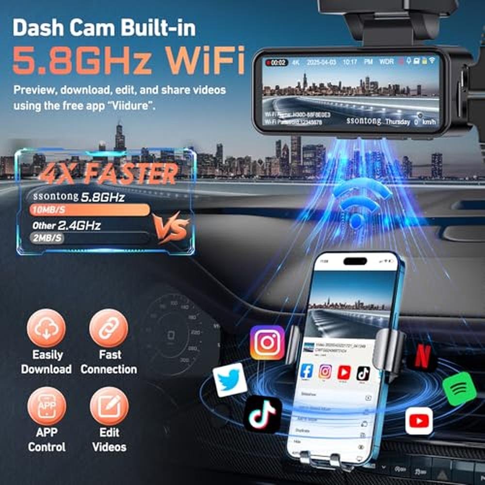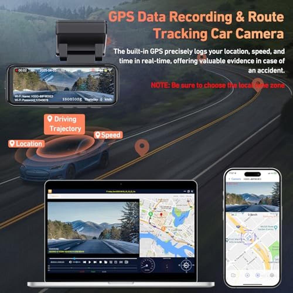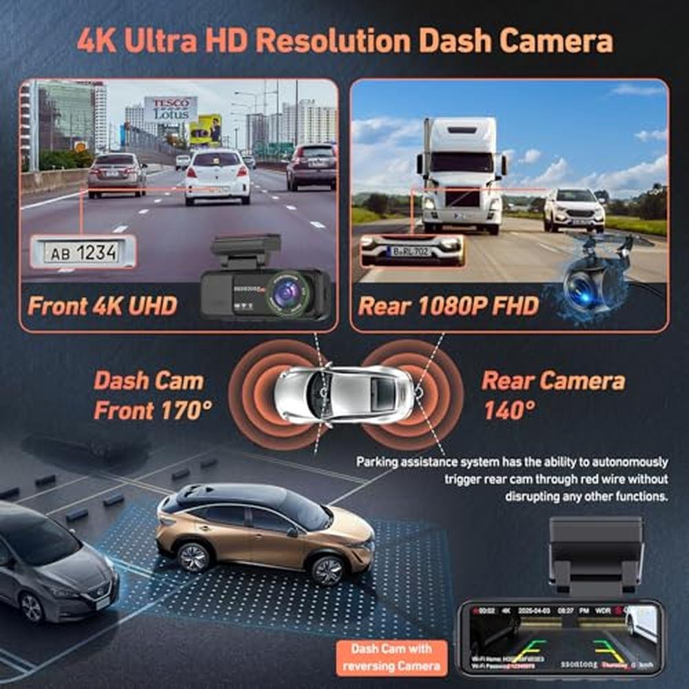 - Capture every detail with crystal clarity using our 4K dash cam with front and rear cameras