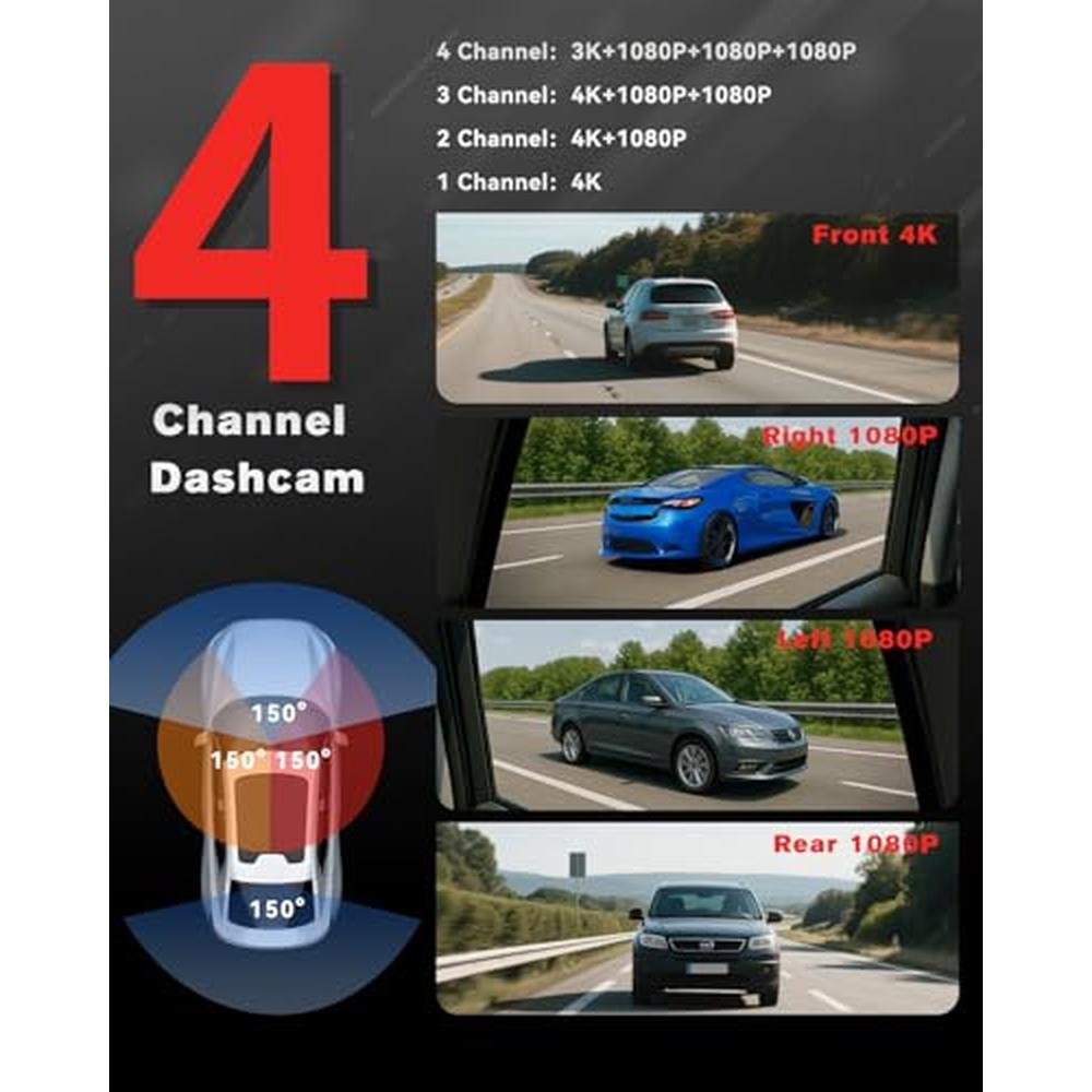 Dash Catcatch | CATCATCH 4 Channel Dash Cam 360 View 4K Front and Rear Dash Camera | Premium High-End Surveillance