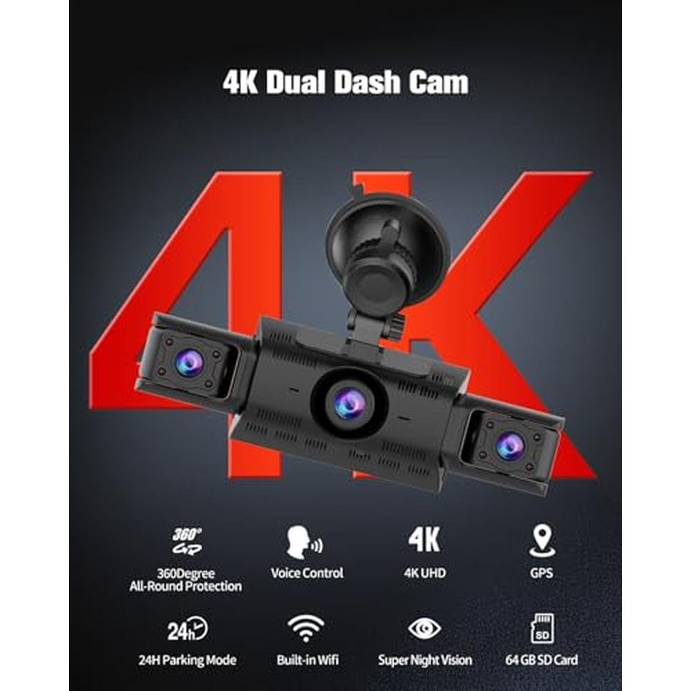 | Special features | 360 Degree/IR light/Free 64 SD card/Free App/Easy to install/3"Display Screen, App Control/Support up to 256GB, Built-In GPS/Easy to Install/Super heat dissipation/long life span/4K Resolution/4 channel dash cam, Built-In WiFi, Night Vision/Voice Control/Loop Recording/ Motion Sensing/5GHz Wifi/G-Sensor//Parking Mode |