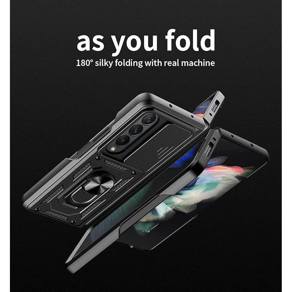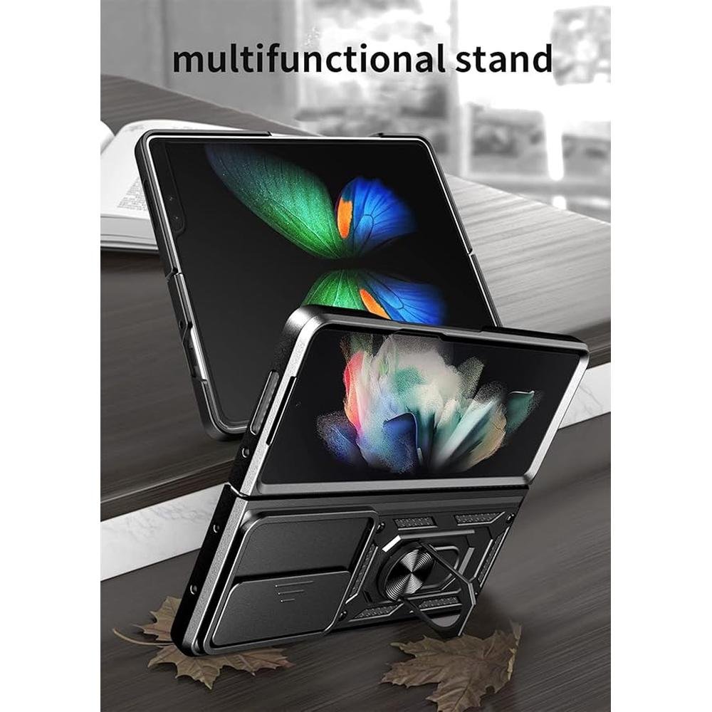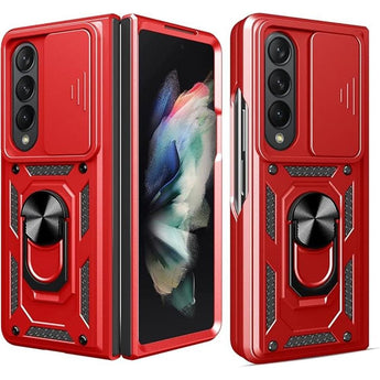CCSmall Phone Case for Samsung Galaxy Z Fold 4 with Slide Camera Window, Heavy Duty Protection Phone Cover Case with Ring Kickstand for Samsung Galaxy Z Fold 4 SJ Red