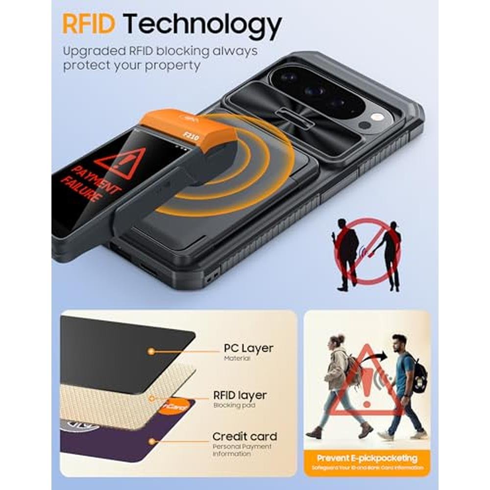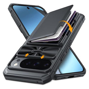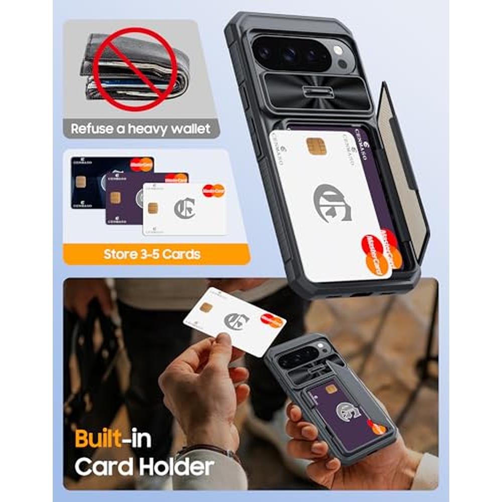 Pixel Case | CENMASO Google Pixel 10 Pro XL Card Holder | RFID Blocking Sliding Camera Cover