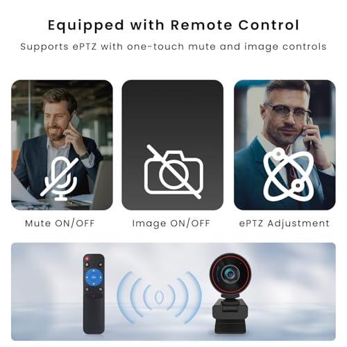 Experience professional-grade video conferencing with the CIRICO UltraCam L52 4K webcam. This versatile camera delivers crystal-clear 4K video at 30fps and smooth 1080p at 60fps, perfect for streaming and virtual meetings. The 90-degree viewing angle and AI framing technology ensure you're always perfectly centered in the frame, while the built-in noise-canceling microphone captures clear audio. Take control of your video experience with the convenient remote featuring one-touch mute, screen management, and 3X digital zoom capabilities. The manual adjustable privacy cover provides peace of mind when the camera isn't in use. With auto-focus, HDR support, and plug-and-play USB connectivity, this webcam seamlessly integrates with your PC or laptop. The sleek black design complements any setup, making it an ideal choice for both home office and professional environments. Backed by a 3-year warranty, the UltraCam L52 combines reliability with cutting-edge features for an exceptional video communication experience.