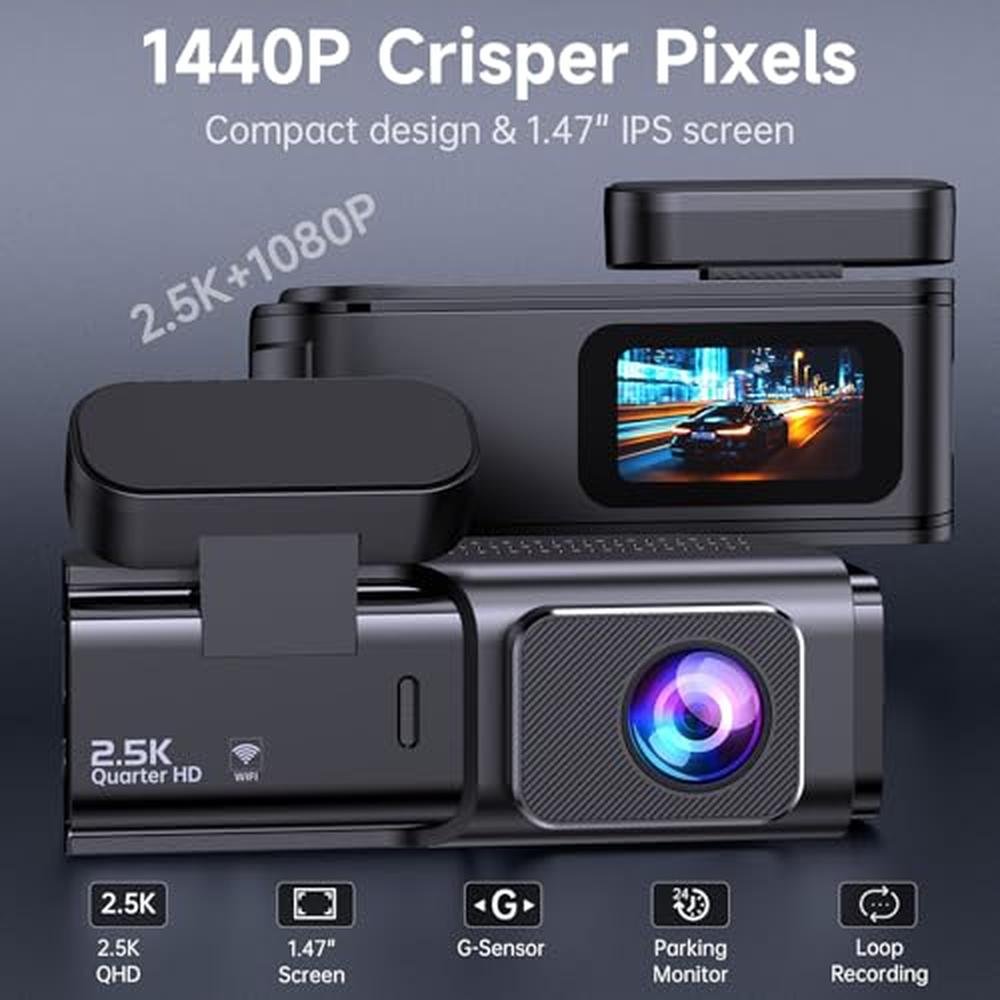 Immerse yourself in unparalleled in-car video recording with our premium dash cam front and rear system, meticulously designed to provide top-tier protection and peace of mind on the road. As a superior dash cam for car owners, our device boasts impressive 2.5K+1080P resolution, capturing every detail with crystal clarity. With its 1.47" IPS screen, built-in Wi-Fi, and 170° wide angle lens, this sophisticated dash camera ensures you never miss a moment. Additional features include advanced night vision, G-sensor, and 24H parking mode, making it an excellent choice for those seeking a reliable and affordable dash cam.