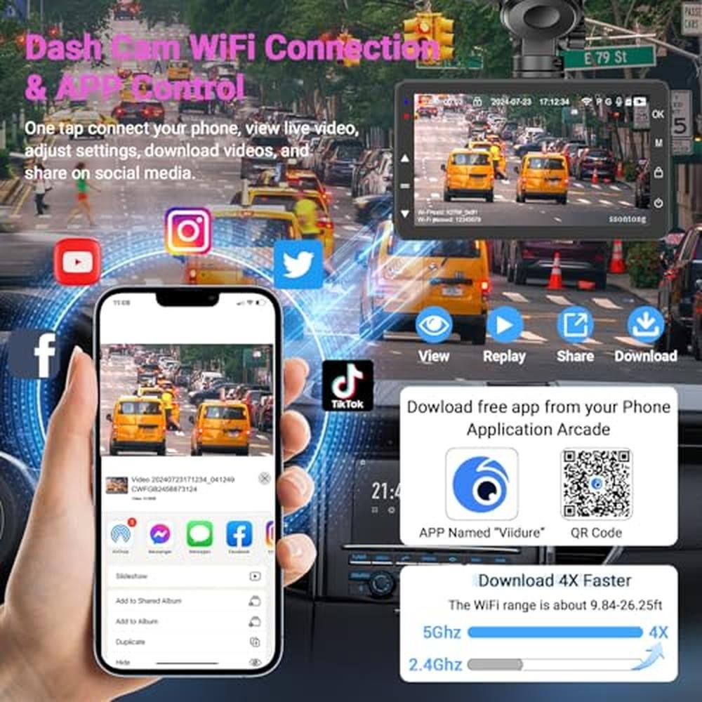 Dash Cam | 4K WiFi APP Control Front and Rear Dash Cam | Ultimate Car Security Camera