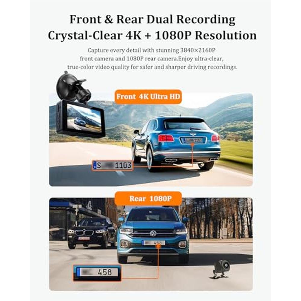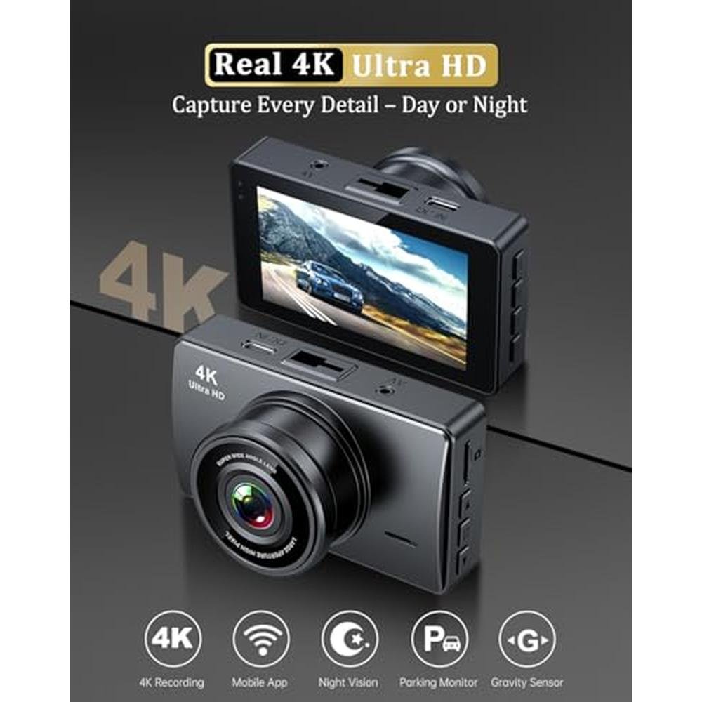 Dash Cam | 4K+1080p Dual Channel Dash Camera for Cars | Built-in WiFi and APP Control