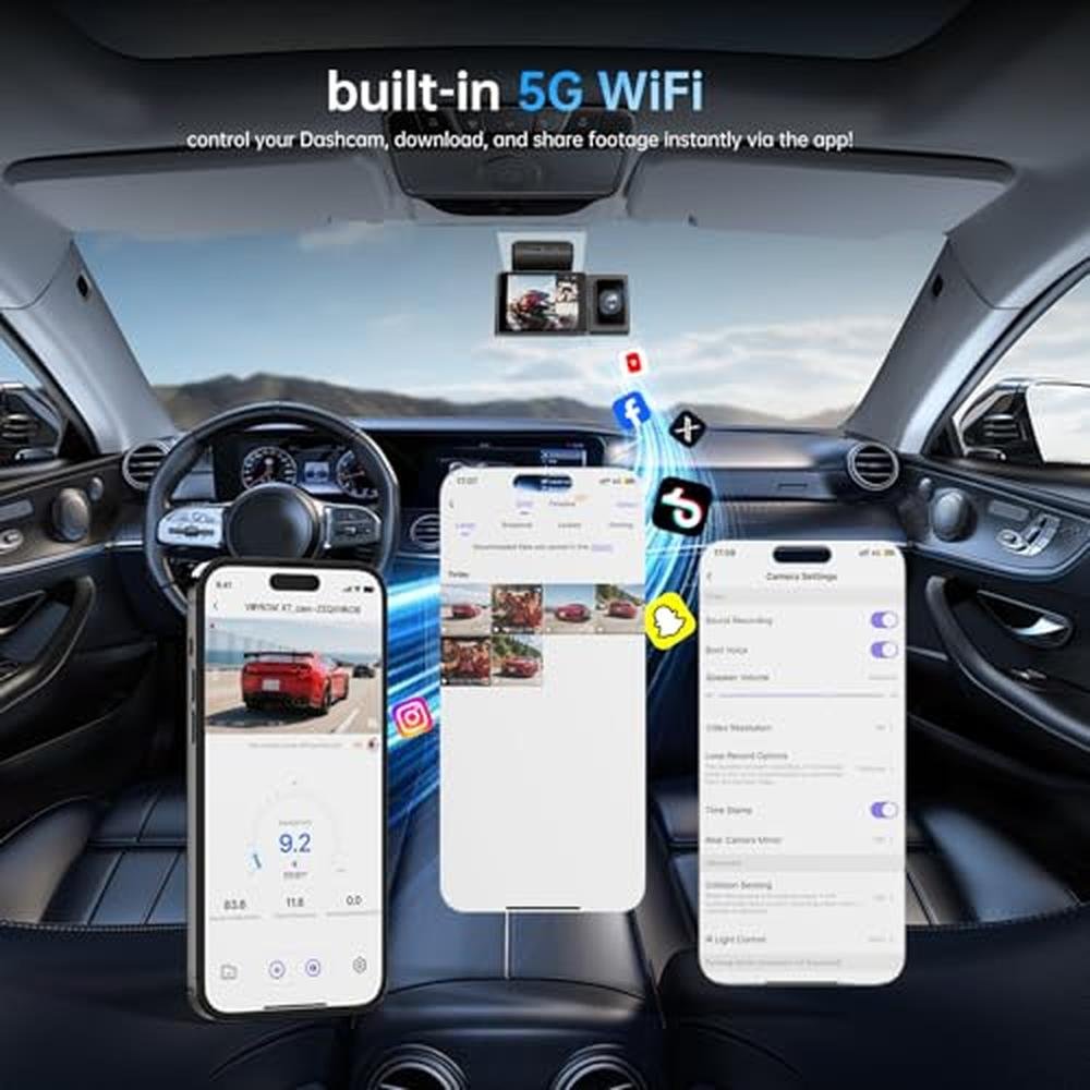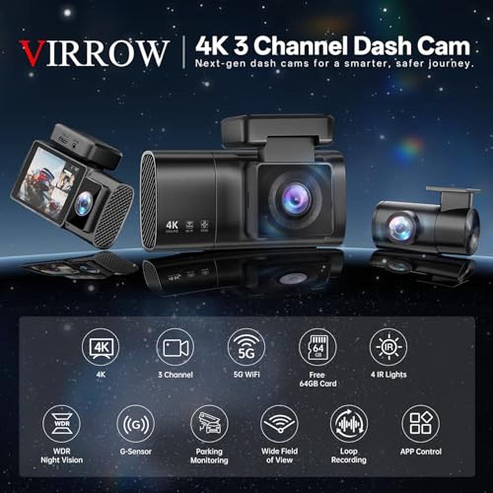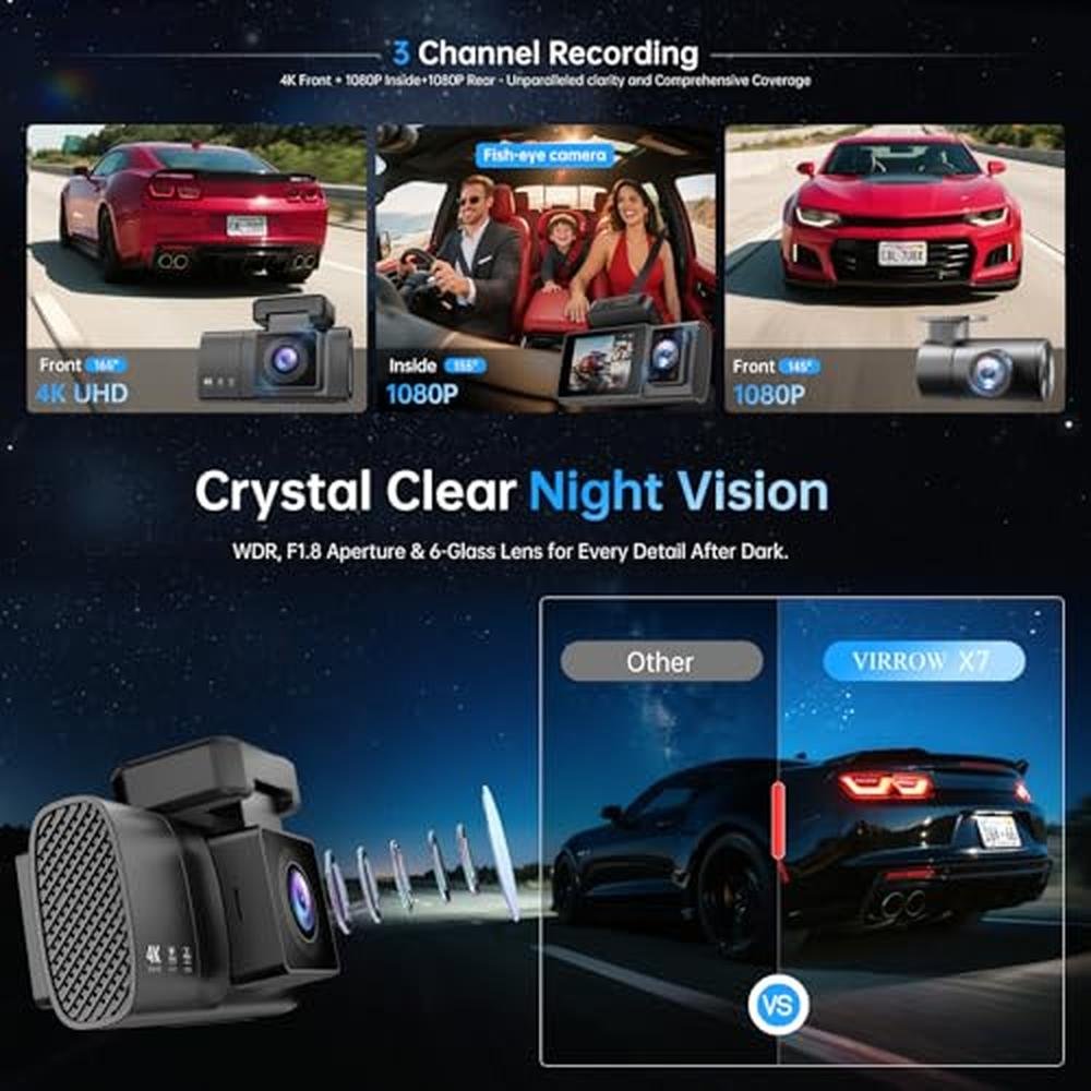 Dash Camera | 3-Channel 4K Dash Cam with 5GHz WiFi, IR Night Vision, and WDR | Ultimate In-Car Surveillance