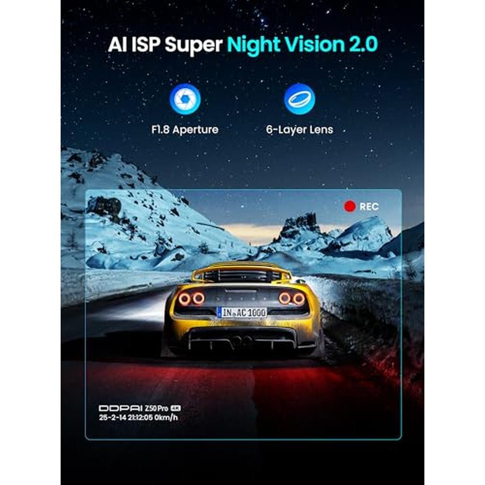 DDPAI Dash Cam Front and Rear | 4K+1080P Resolution | Advanced AI ISP Night Vision and 5G WiFi 6 Connectivity