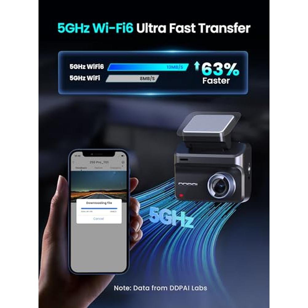 - Built-in 5G WiFi 6 connection for instant video transfers via the DDPAI app and real-time safety alerts