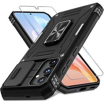 DEERLAMN Case for Samsung Galaxy S24+ Plus with Slide Camera Cover+Screen Protector (1 Pack), Rotated Ring Kickstand Military Grade Shockproof Protective Cover-Black