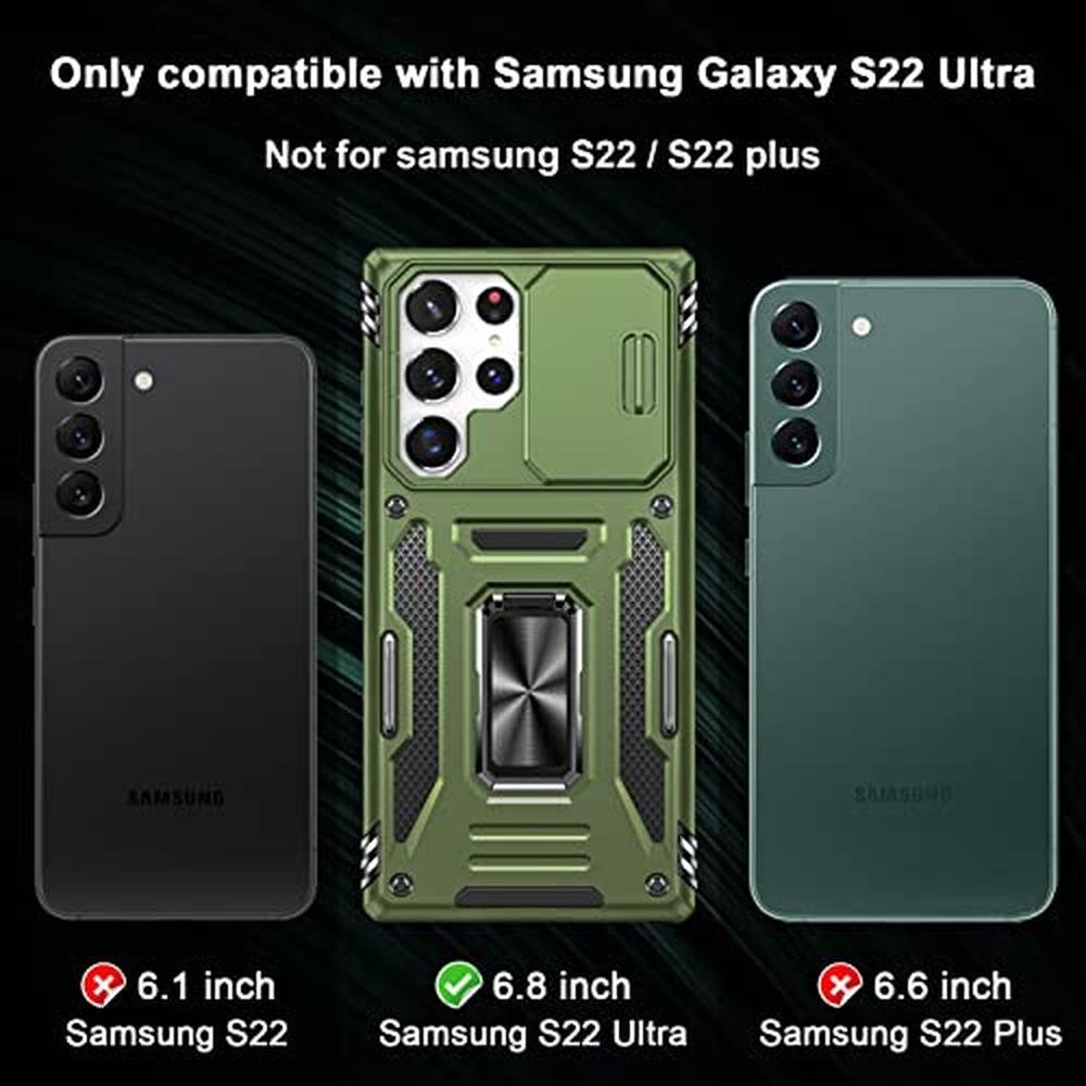 Experience the pinnacle of protection for your Samsung Galaxy S22 Ultra with our exquisite, premium case, meticulously designed to deliver unparalleled military-grade drop protection and a built-in 180-360 rotate ring kickstand. As a discerning choice for a case Samsung enthusiast, our product distinguishes itself through its sophisticated shockproof features and camera cover, ensuring your device remains safeguarded and functional. Whether you're seeking a case Samsung S22 Ultra or exploring alternatives like the case Samsung S23 Ultra or case Samsung S25 Ultra, our product's versatility, durability, and superior craftsmanship make it an outstanding selection. With its unique, refined design and robust construction, our case is tailored for those demanding the finest protection for their device.