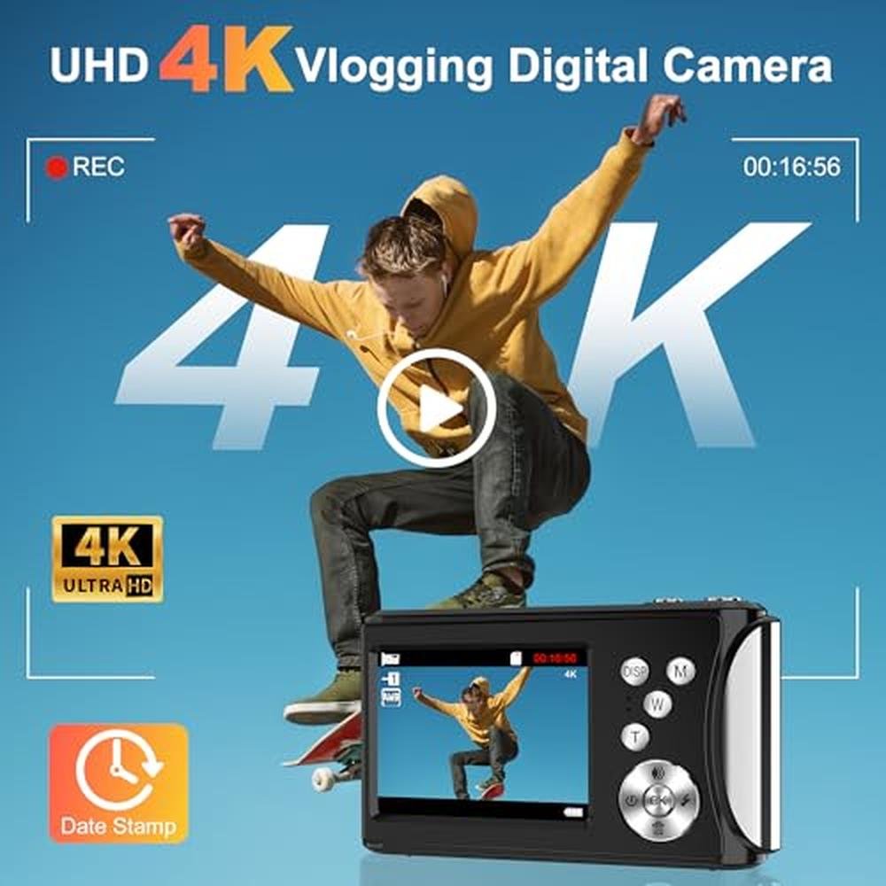 - Upgraded 4K Ultra HD & 64MP Digital CameraThis digital camera captures crisp 4K video (30FPS) and stunning 64MP photos, turning everyday moments into cinematic memories. Durable metal finish stands out from cheap plastic cameras. This point and shoot digital camera needs no experiencePress the shutter once and seize magic instantly.