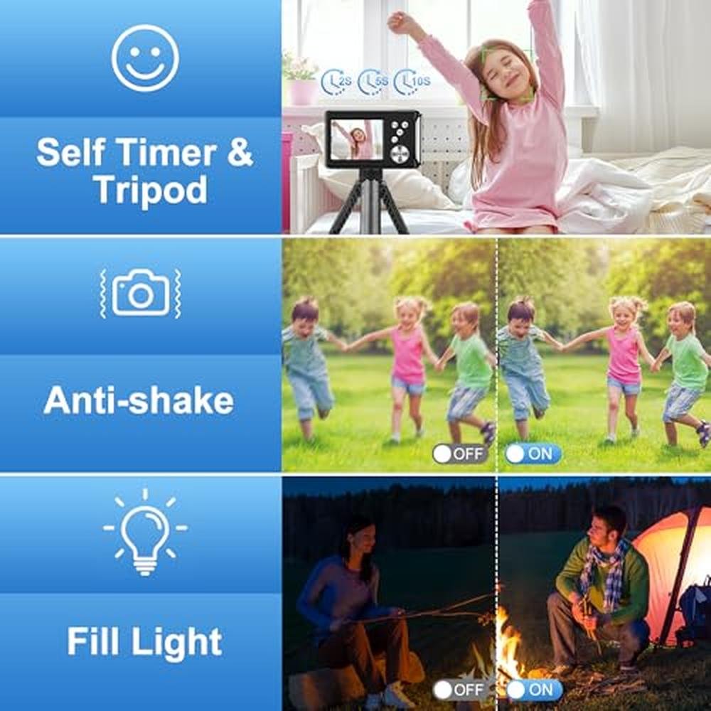 - Compact & PortableThis pocket-sized digital camera is perfect for travel and everyday use, easily fitting into bags or pockets. An ideal Christmas or birthday gift for kids, this camera helps cultivate their interest in photography while allowing them to capture life's beautiful moments and develop a passion for documenting everyday joys.
