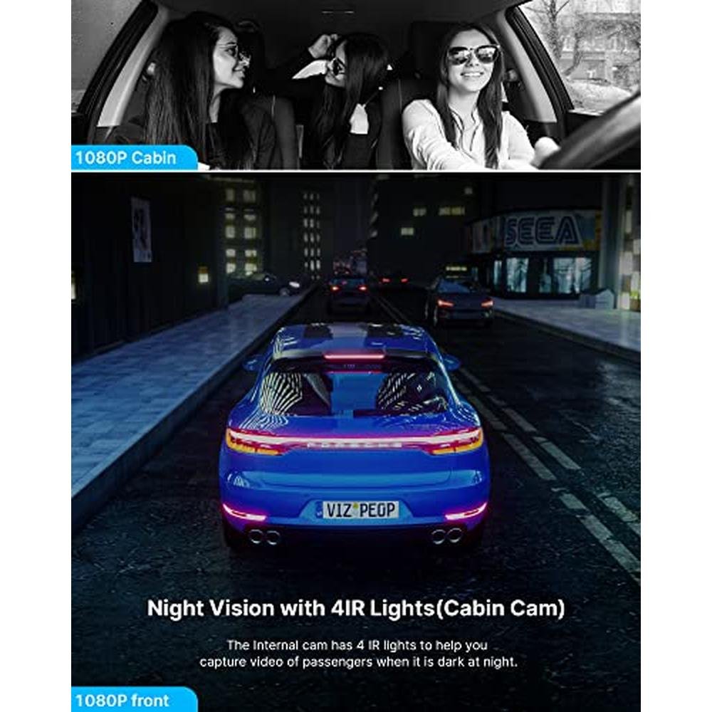 Dash Camera | Dual Dash Cam Front and Inside 1080p | IR Night Vision Car Camera for Taxi with Accident Lock and Parking Monitor