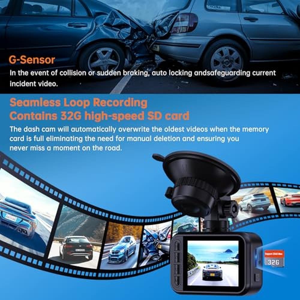 Special features Built-In Microphone, Display, Speaker, Loop Recording, G-Sensor, Automatic Incident Detection, F1.8 Super Aperture, 170 Super Wide Angle, WDR & HDR, High-Speed 32G SD Card, Type-C Port, Super Infrared Night Vision, 12-Month Replacement Service&45-Day Refund Guarantee (support@customerafter-sales.com)