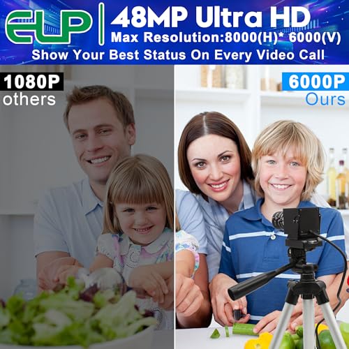 • The ELP 48MP USB Camera features a manual zoom lens with 3X optical zoom (3.6-10mm) for enhanced close-up shots and precise control over the frame