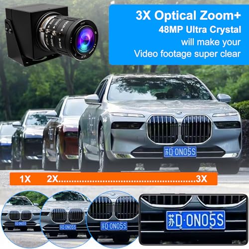 Special Features mini size, light weight, Equipped with 3M/9.9ft USB cable, Camera with UVC for computer, laptop, pc, Jetson Nano, 48mp Ultra HD, 3.6-10mm 3X zoom lens